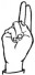 На ћирилици написано ЈЕФИМИЈА ДАНГУБИЋ састоји се из 16 слова [?]. Исписано ћириличном једноручном азбуком за глувонеме: